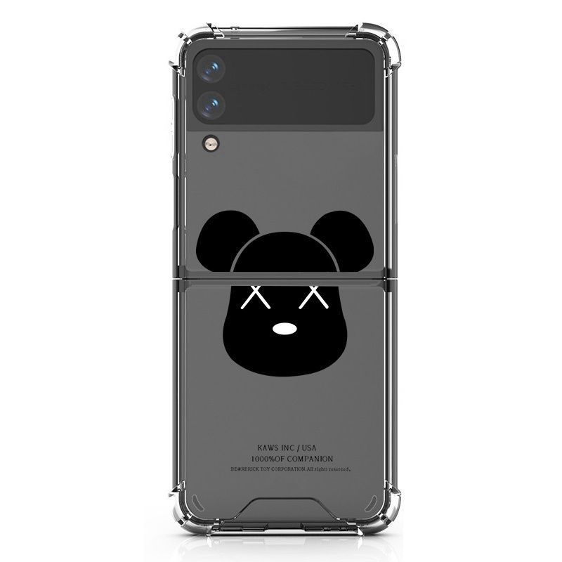 • カウズ ギャラクシー Z FLIP4 スマホケース 四角設計 ソフト KAWS ブランドGalaxy z flip3スマホカバー 落下保護 GALAXY Z Flip4透明ケース 個性熊柄 ファッション 軽量 放熱性抜群 メンズ